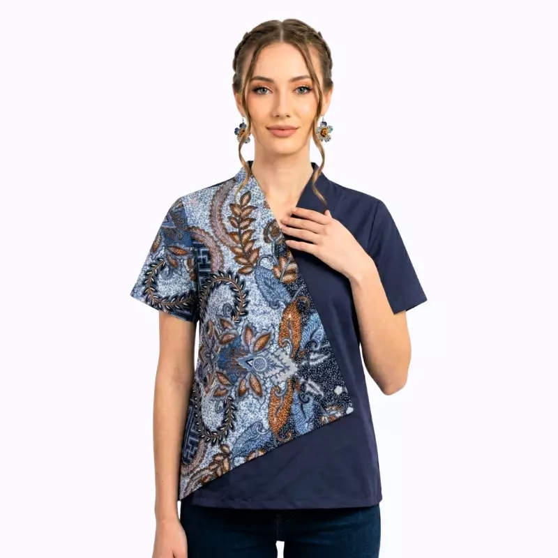 Blouse Batik Wanita - Atasan Batik - Bhatara Batik Leslie - Baju Batik Modern Lengan Pendek