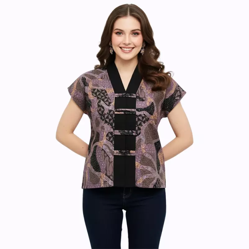 Blouse Batik Wanita - Atasan Batik - Bhatara Batik Olivia - Baju Batik Modern Lengan Pendek