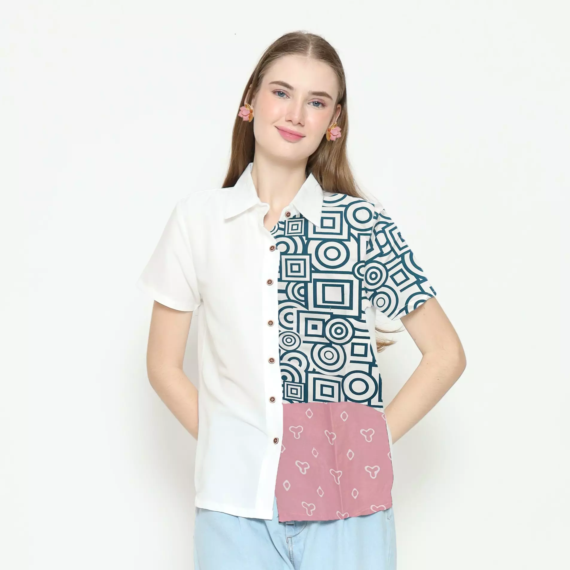 Blouse Batik Wanita - Bhatara Batik Agnes - Atasan Batik Modern Lengan Pendek