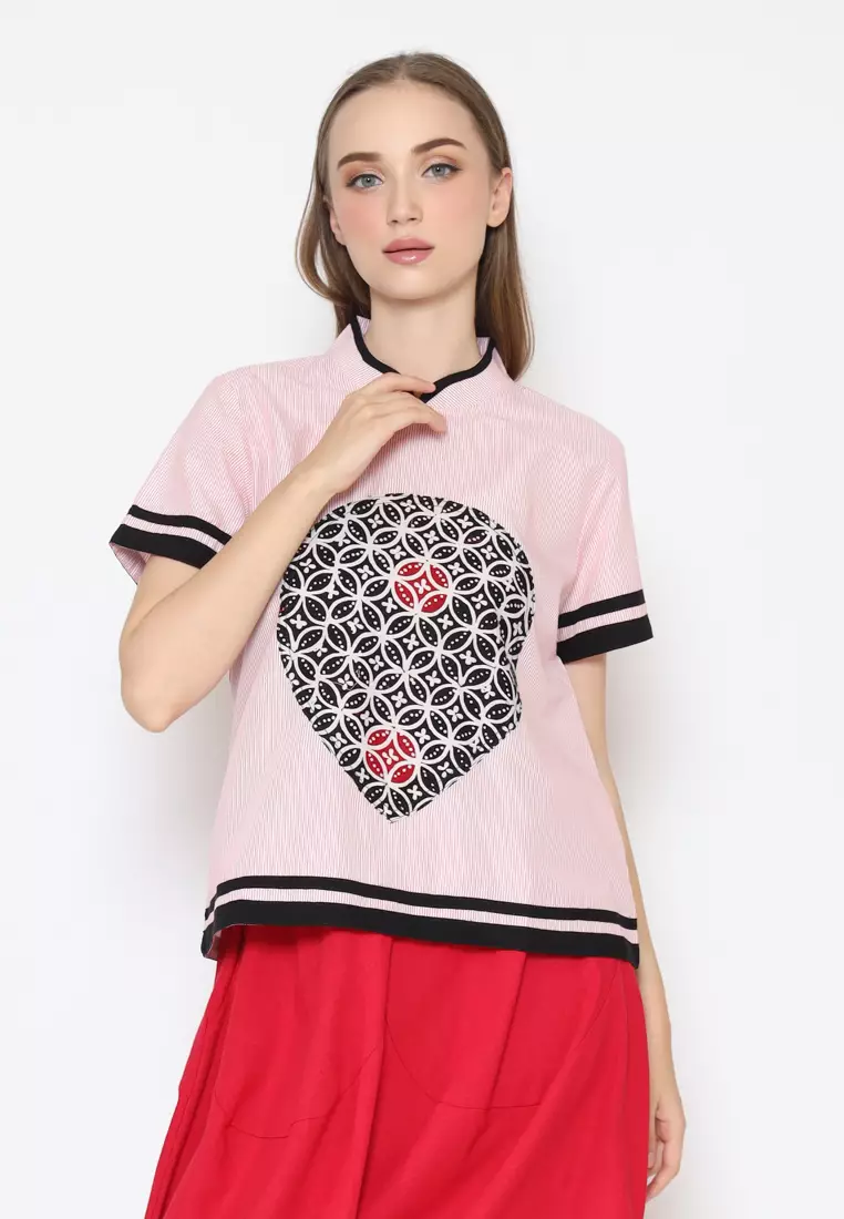 Blouse Batik Wanita - Bhatara Batik Alma - Atasan Batik Modern Lengan Pendek