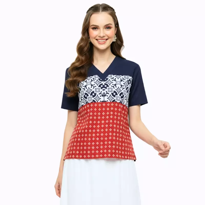 Blouse Batik Wanita - Bhatara Batik Nanita - Atasan Batik Modern Lengan Pendek