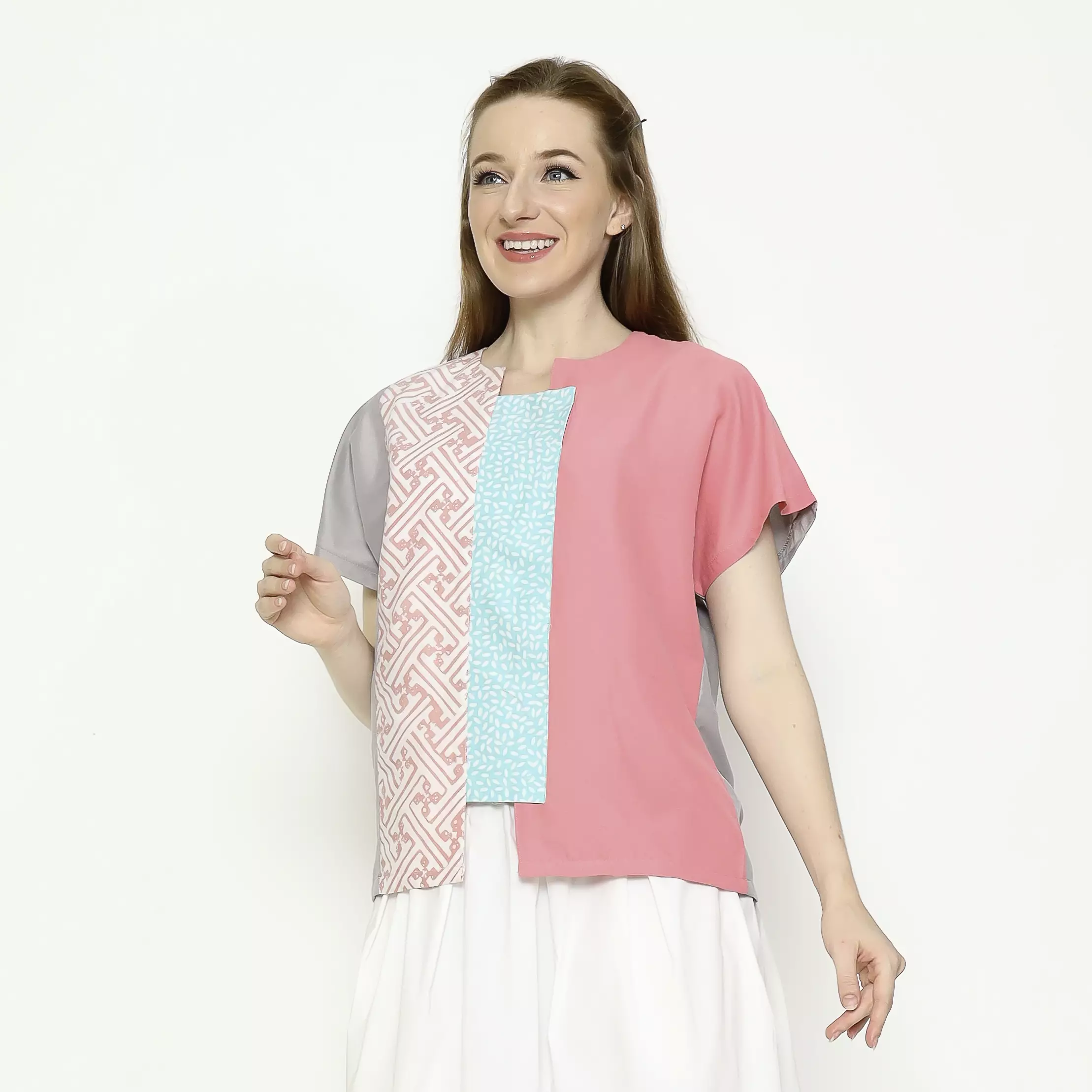 Blouse Batik Wanita - Bhatara Batik Novina - Atasan Batik Modern Lengan Pendek