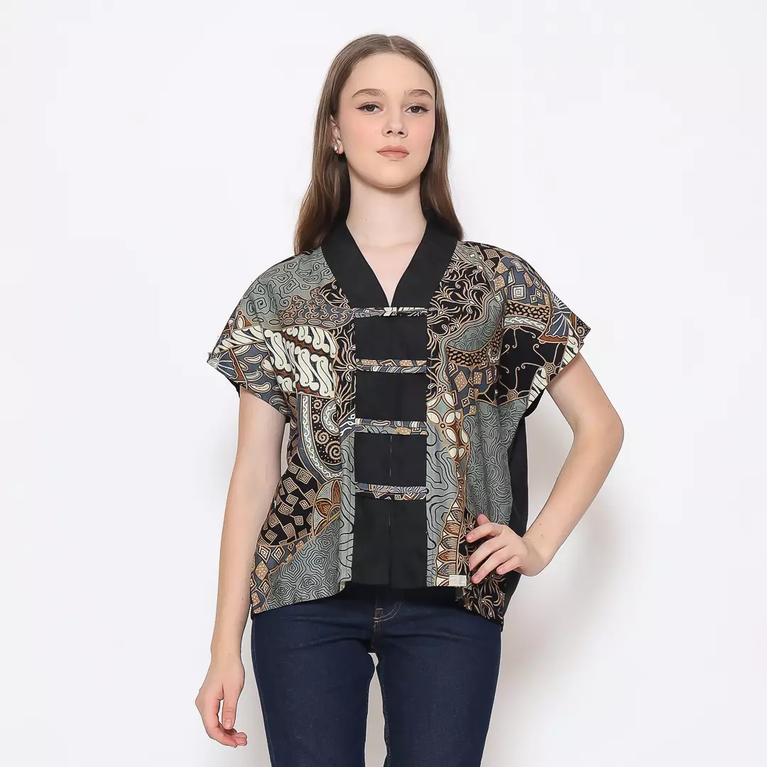 Blouse Batik Wanita - Bhatara Batik Olivia - Atasan Batik Modern Lengan Pendek