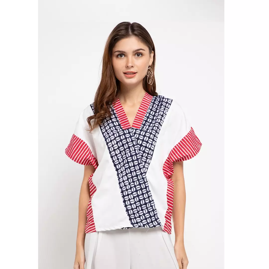 Blouse Batik Wanita - Bhatara Batik Rosalind - Atasan Batik Modern Lengan Pendek