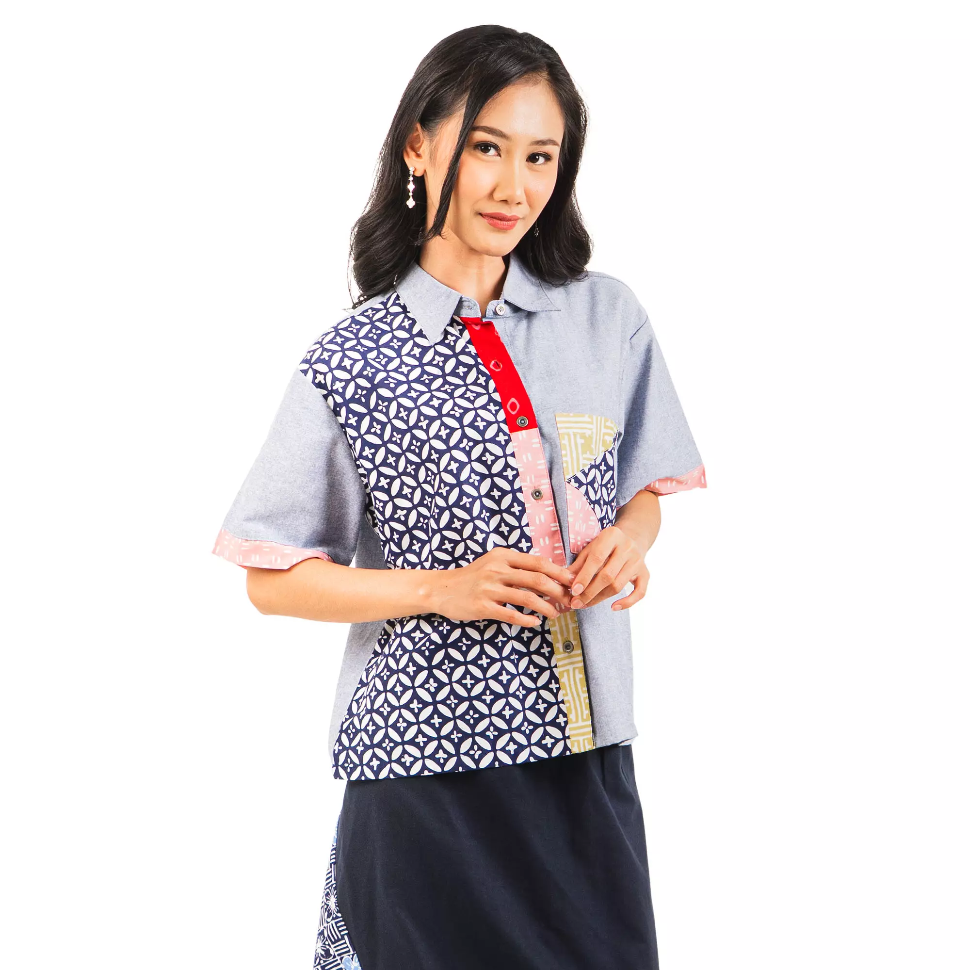 Kemeja Batik Wanita - Bhatara Batik Sassy - Atasan Batik Modern Lengan Pendek