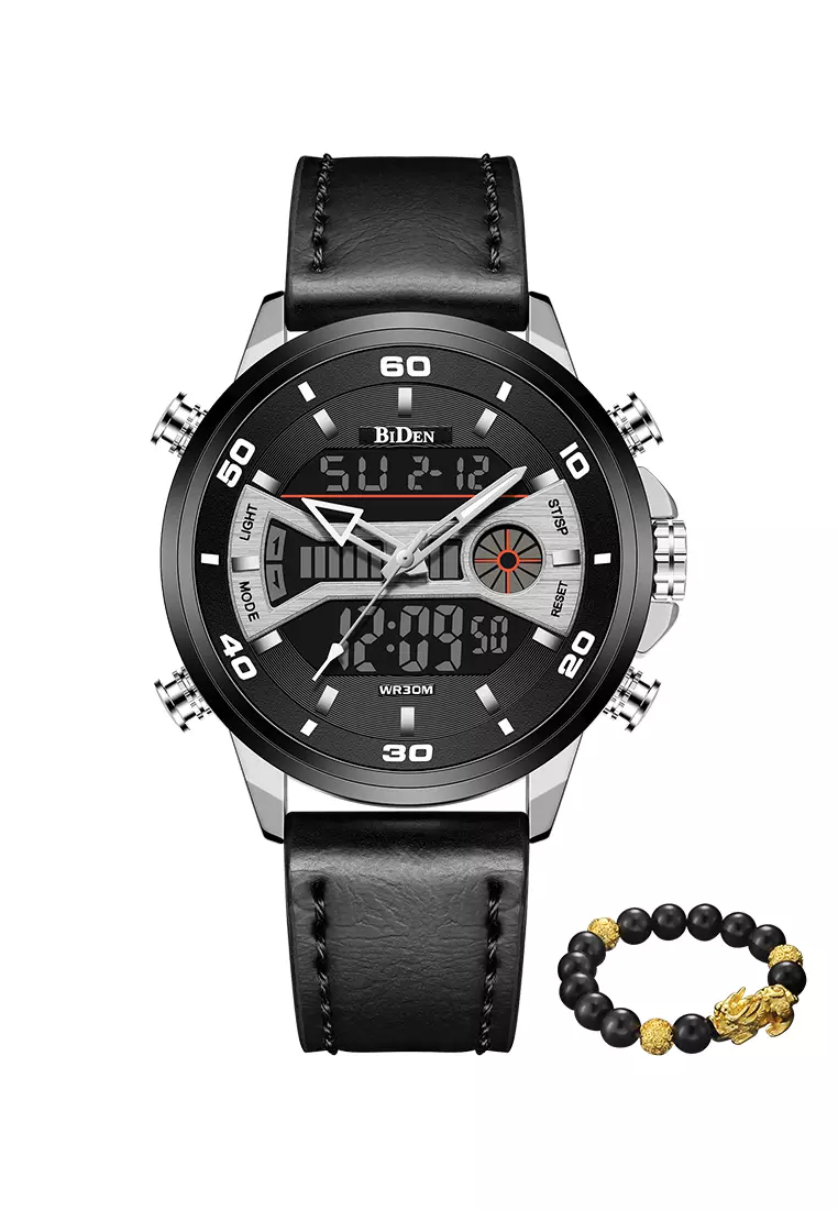 Biden WatchJam Tangan Pria Olahraga Anti Air Jam Analog&Digital Tali Kulit Minggu/Tanggal/Waktu Ganda Dial Original hitam1290000.00336000.00