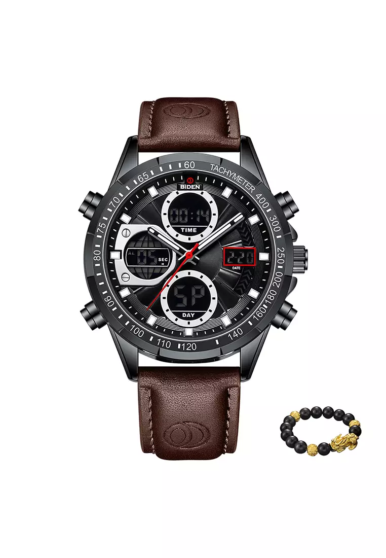 Biden WatchJam Tangan Pria Original Multifungsi Analog&Digital Tali Kulit Olahraga Anti Air Jam Tangan Cowok Brownblack890000.00307000.00
