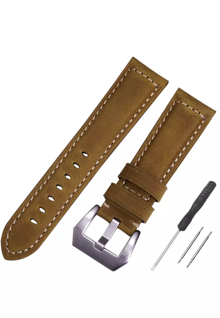 Tali Jam Watch Strap Tali Kulit Pria Buram Leather Strap 24mm Jam Tangan Kulit cokelat