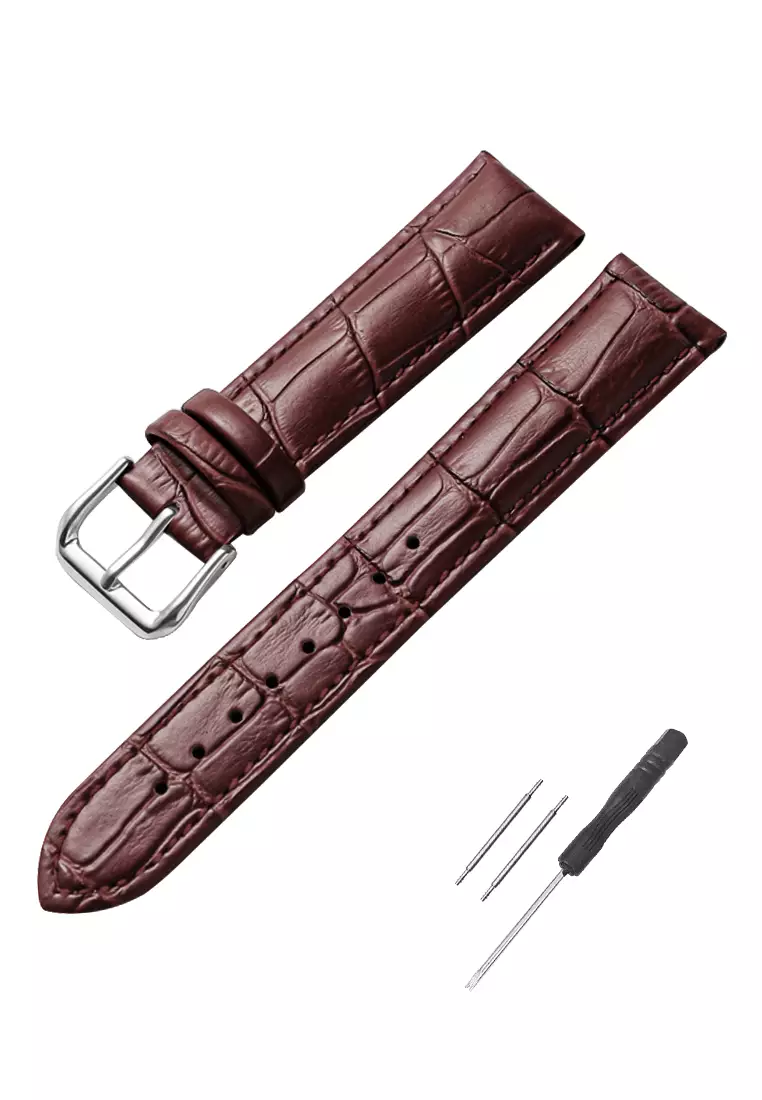 Tali Kulit Jam Tangan Leather Strap Slub Pattern Leather Pria/Wanita 22mm brown