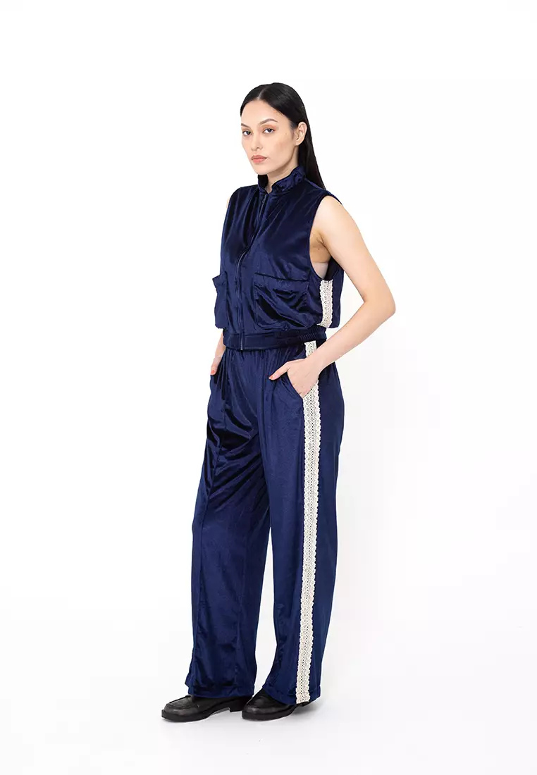 BOWN - Agatha Velvet Track Vest Navy