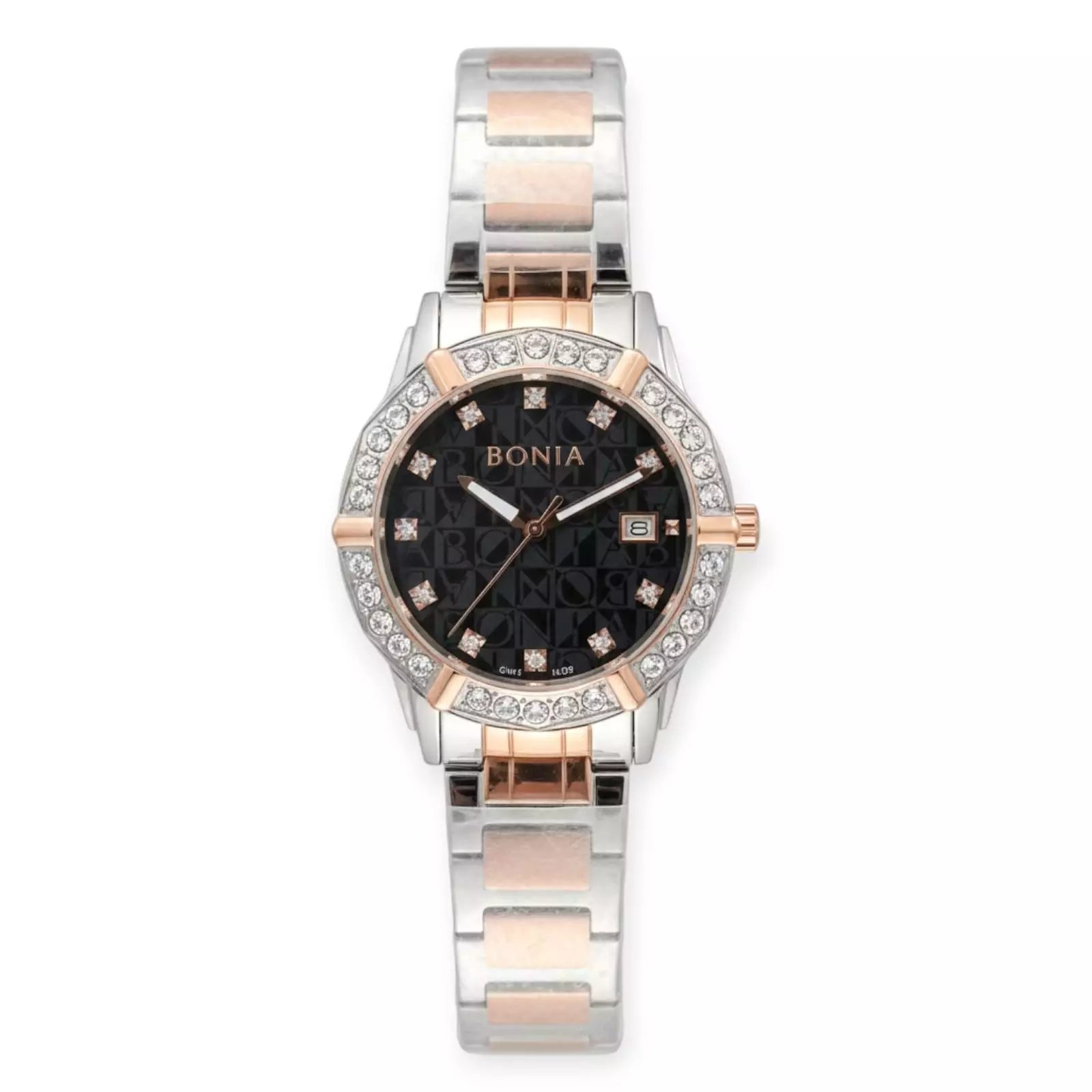 Bonia BNb10651-2633S Hitam Rantai Silver Kombinasi Rosegold Cewek