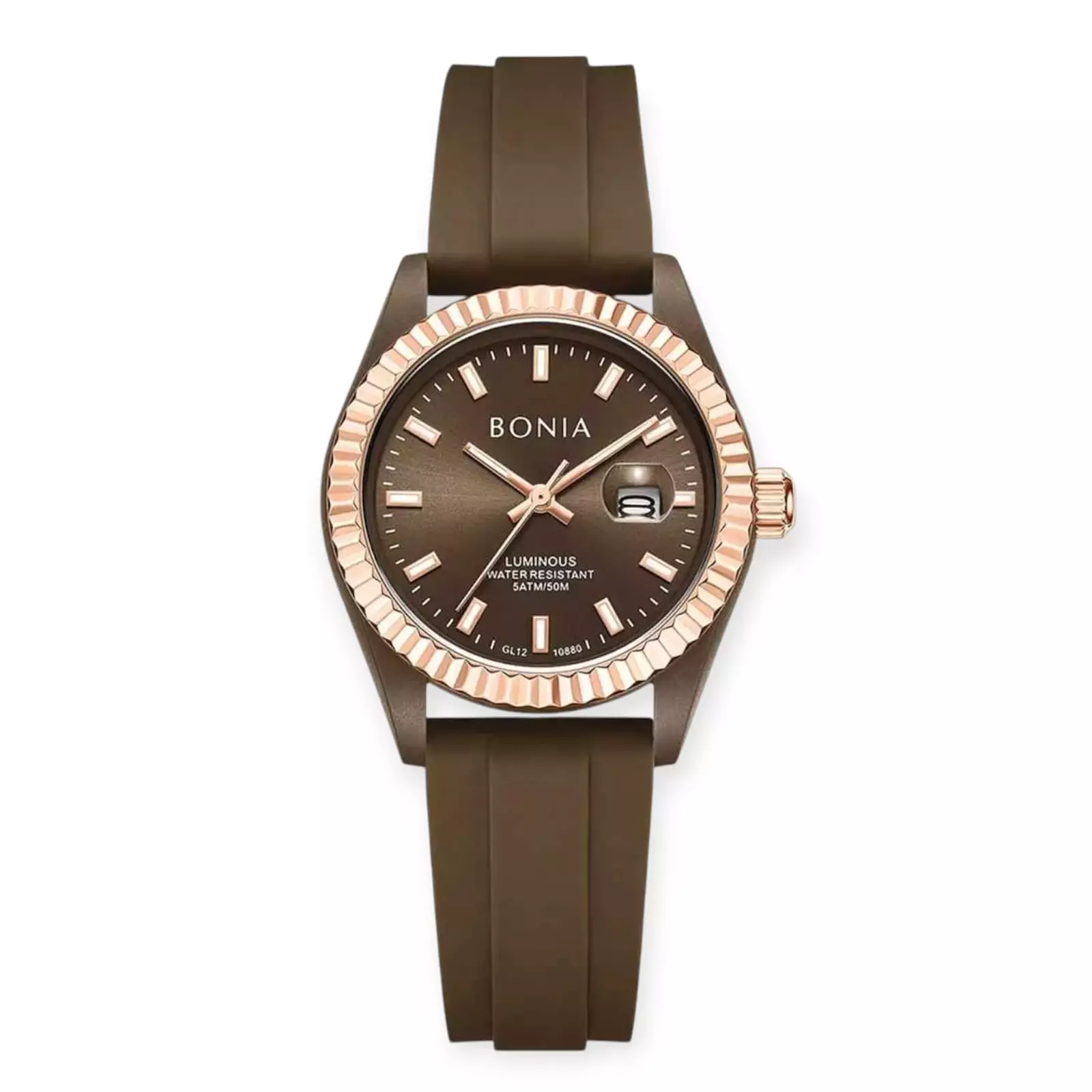 Bonia BNB10880-2942 Rosegold Karet Cokelat Cewek