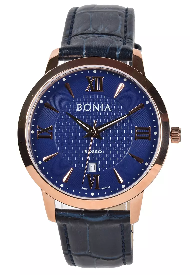 Bonia - Jam Tangan Pria - Rosegold - Blue Leather Strap - BNR166-1583