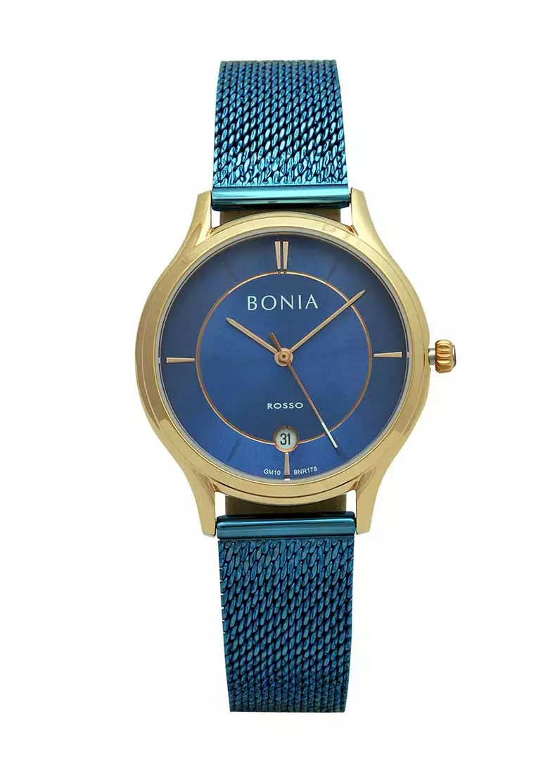 Bonia Jam Tangan Wanita - Blue Rosegold - Tali Pasir - BR178-2582