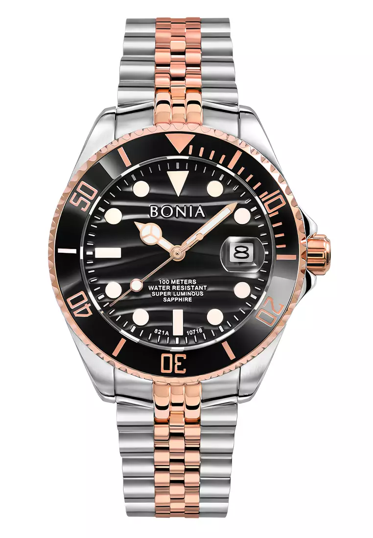 Bonia Sapphire Glass Automatic Limited Edition - Silver Rosegold - All Stainless Steel - BNB10718-1636LE