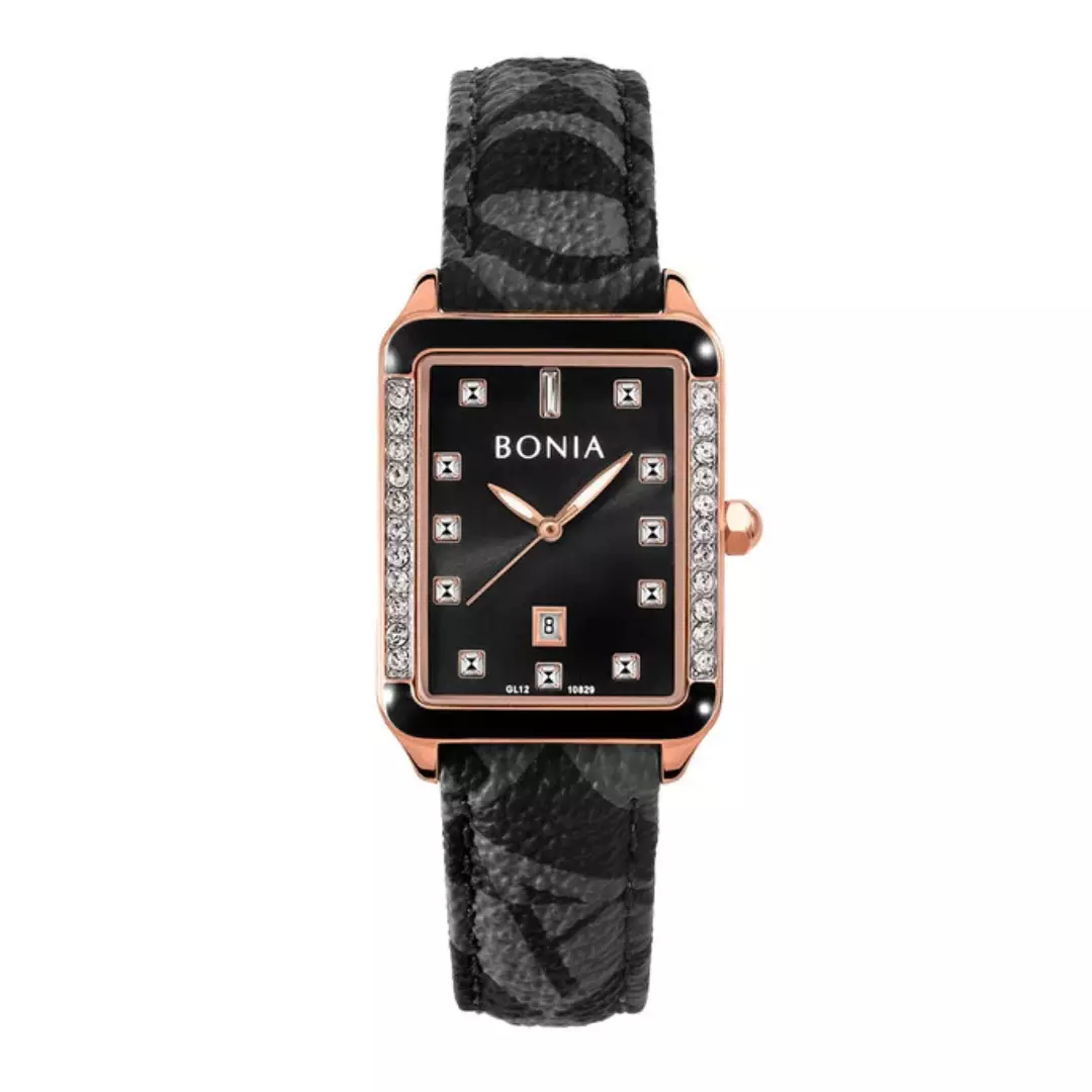 Jam Tangan Wanita Bonia Black Dial Leather Strap Analog B10829-2537S