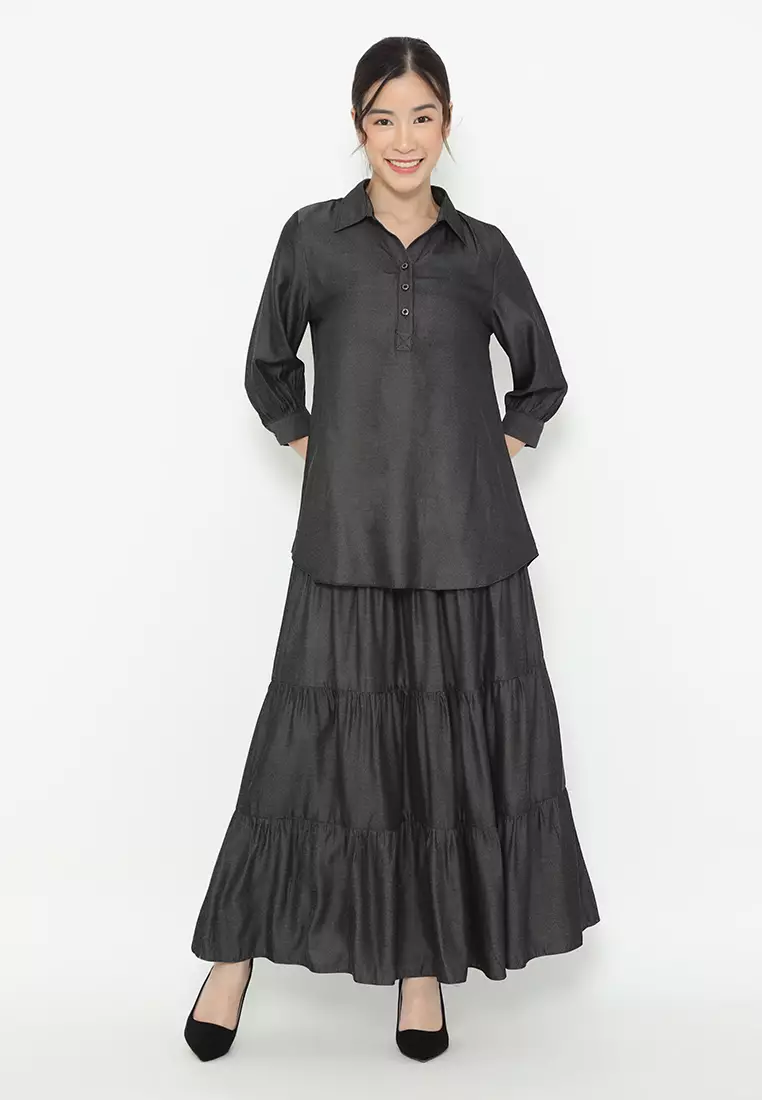 Brilliant GirlBlouse Soft Denim With V neck In Black By Brilliant Girl Warna HITAM499000.00249500.00