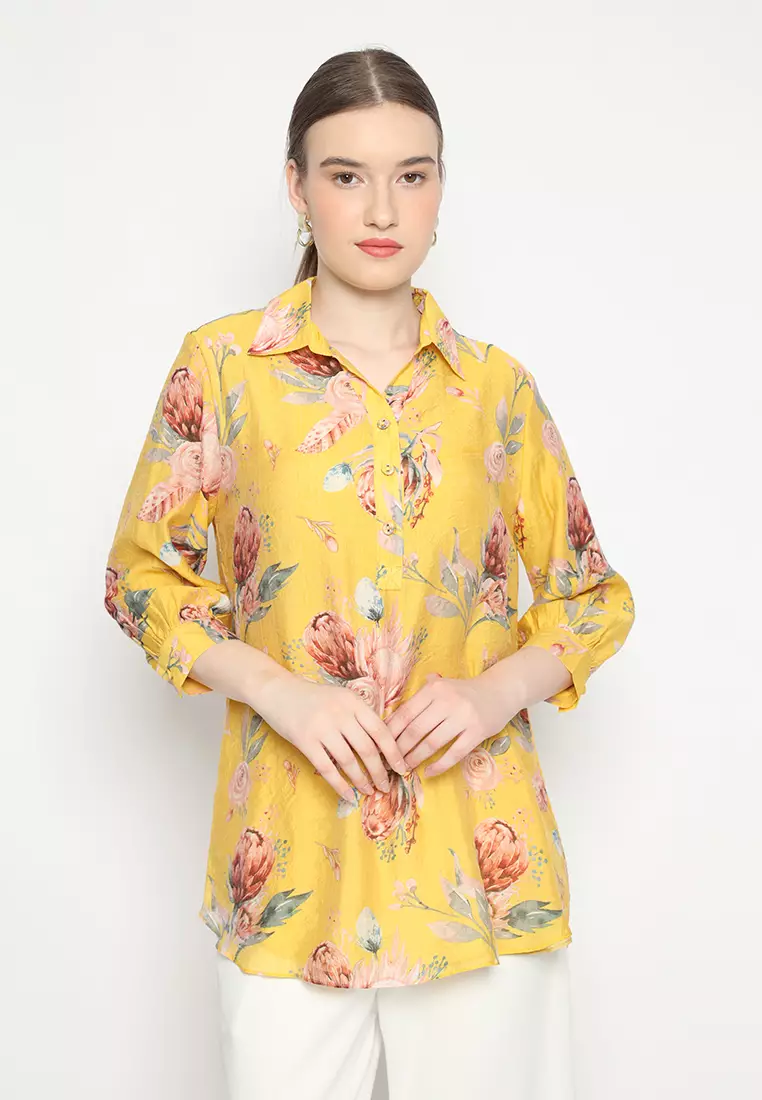 Brilliant GirlBlouse V Neck Floral Motif In Yellow By Brilliant Girl Warna KUNING529000.00264500.00
