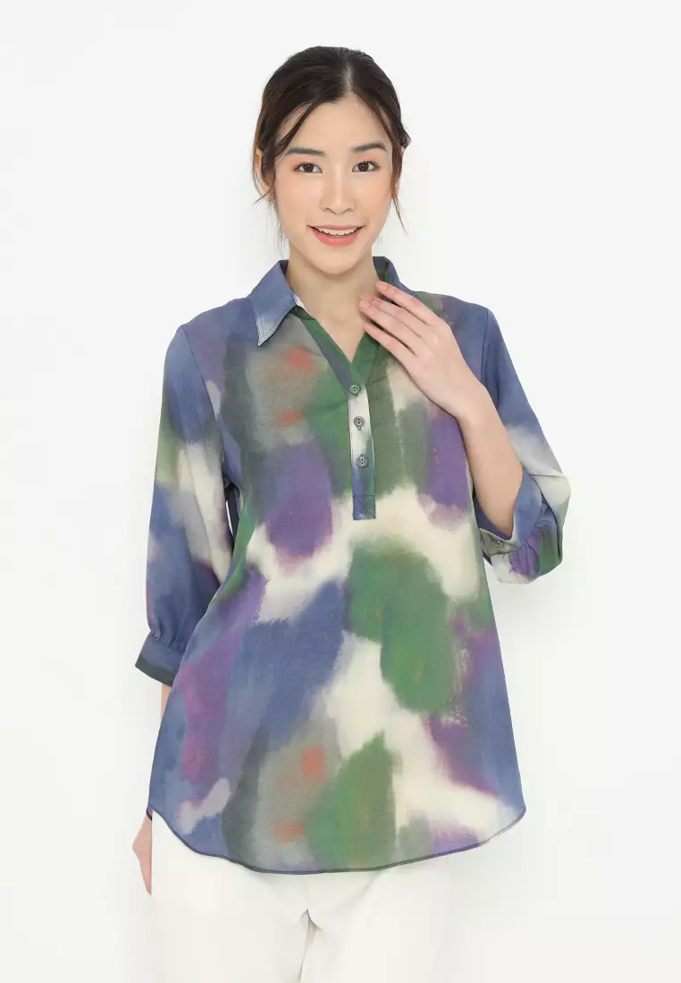 Blus V neck With Mulicolor Pattern By Brilliant Girl Warna UNGU