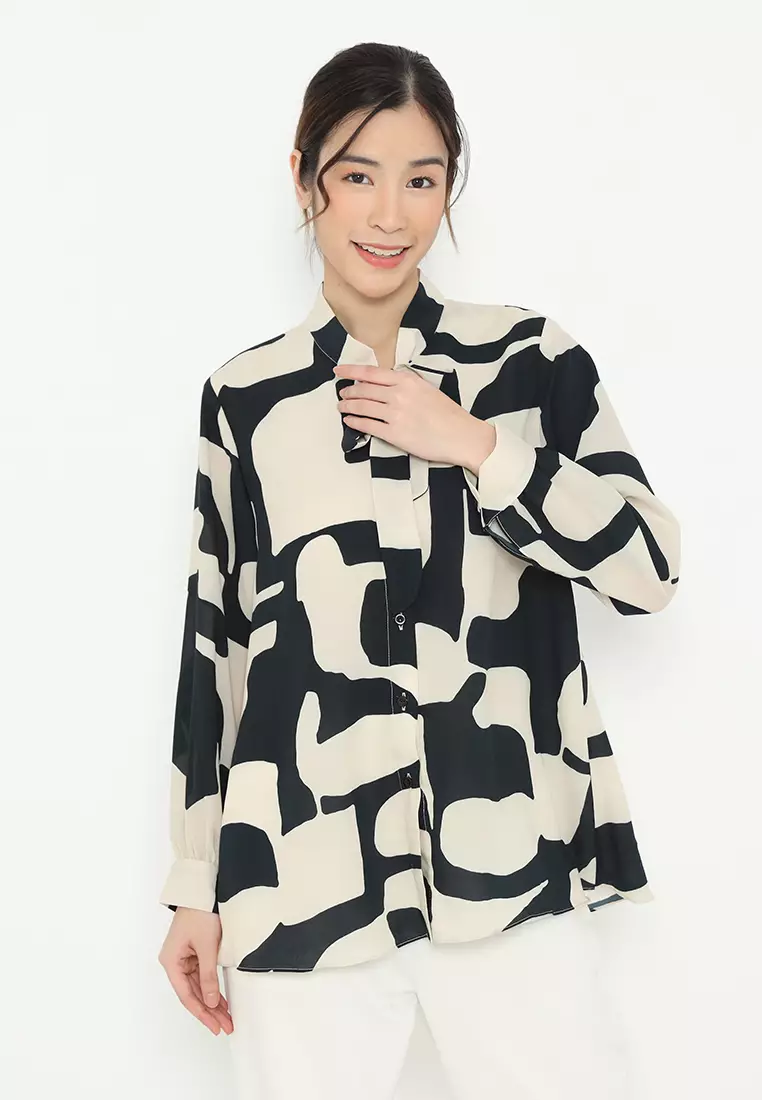 Brilliant GirlBlus With Geometri Pattern With Long Sleeve In Cream By Brilliant Girl Warna CREAM599000.00419300.00