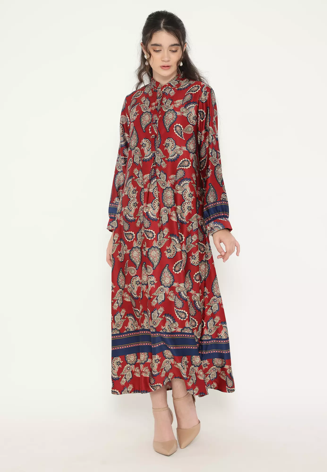 Gamis Long Dress Red Paisley Armany Silk Arlette By Brilliant Girl Warna Merah