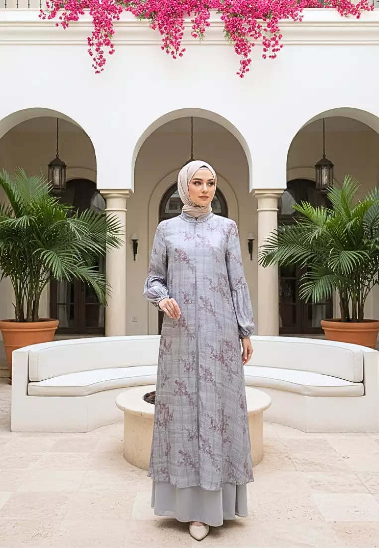 Brilliant GirlGamis Wanita Motif Floral Stone Blue Premium Dress Muslimah Elegan Lengan balon By Brilliant Girl Warna BIRU1159000.00927200.00
