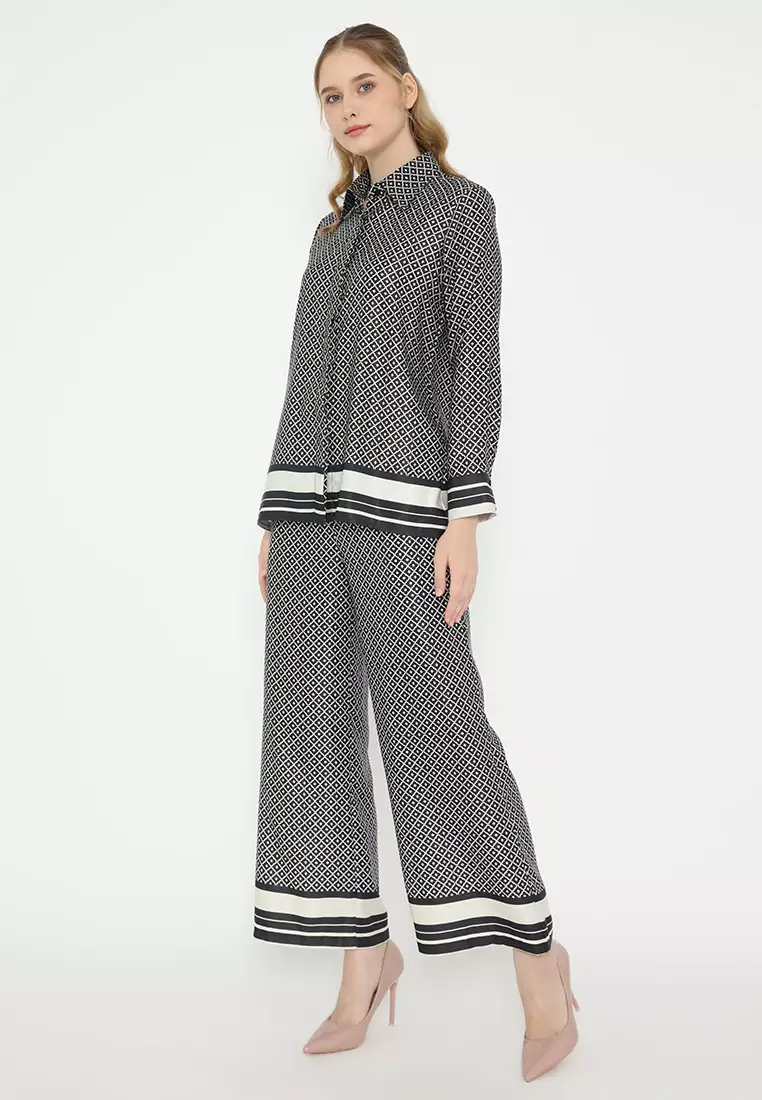 Monogram Shirt With Long Sleeve Casual Look In Black By Brilliant Girl Warna HITAM