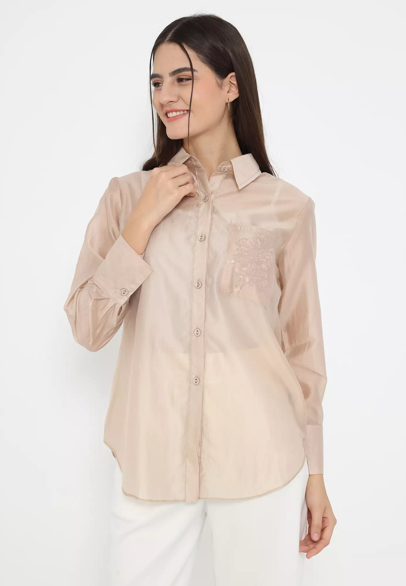 Plain Shirt Nude Cream With Embroidery In Pocket By Brilliant Girl Warna CREAM