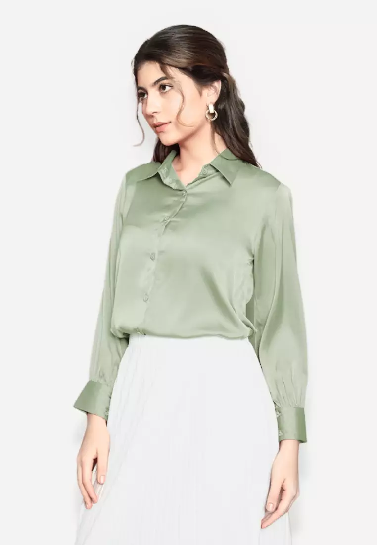 Plain Shirt Sateen In Soft Green By Brilliant Girl Warna HIJAU