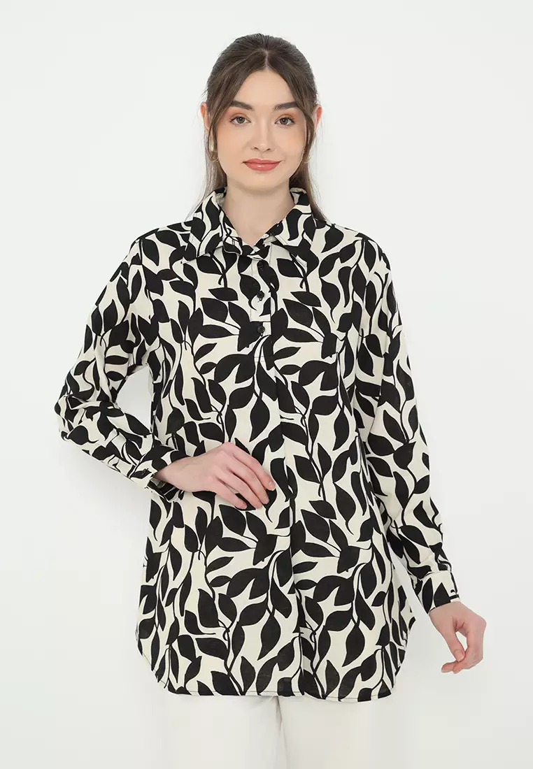 Brilliant GirlShirt Linen Combination Cream Floral Black Arlette By Brilliant Girl Warna Cream419900.00209950.00