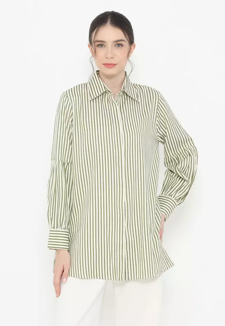 Brilliant GirlShirt Long Sleeve Puffy Cream Striped Green Arlette By Brilliant Girl Warna Cream379900.00189950.00