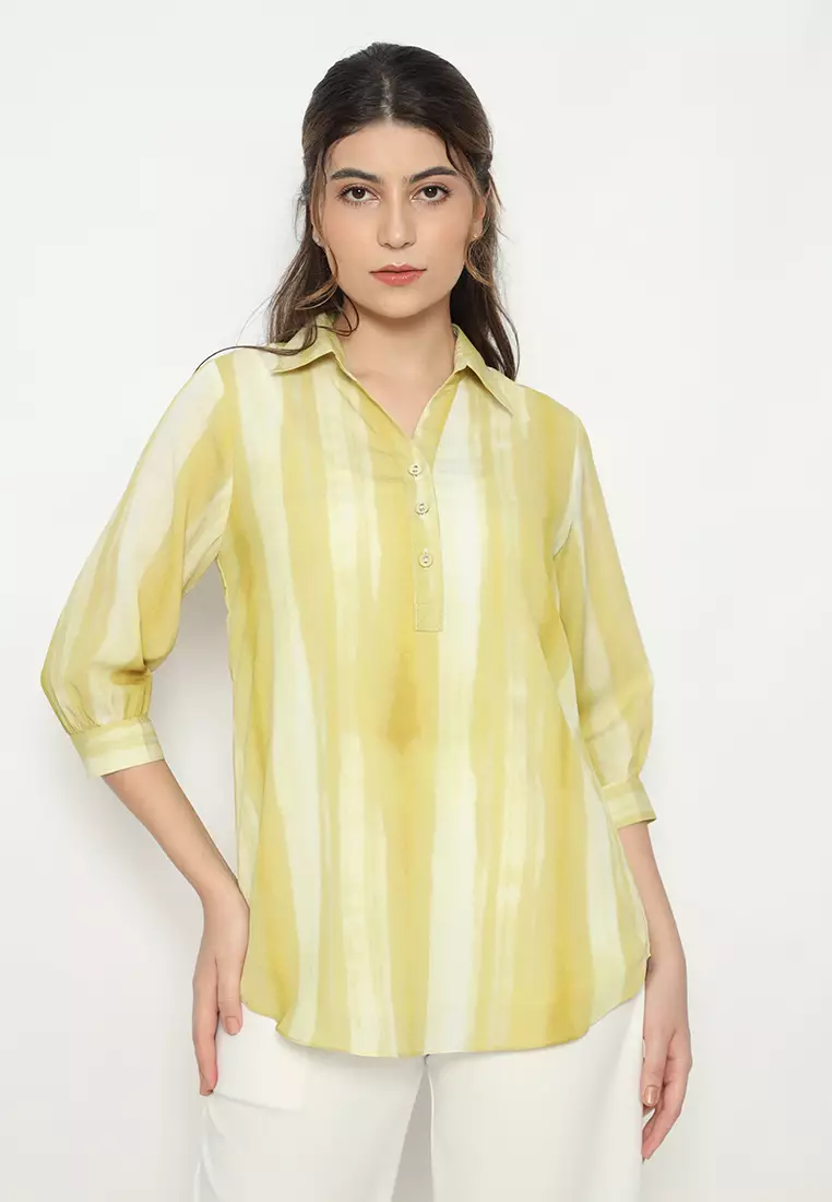 Stripe V neck Blouse Chifon In Yellow By Brilliant Girl Warna KUNING