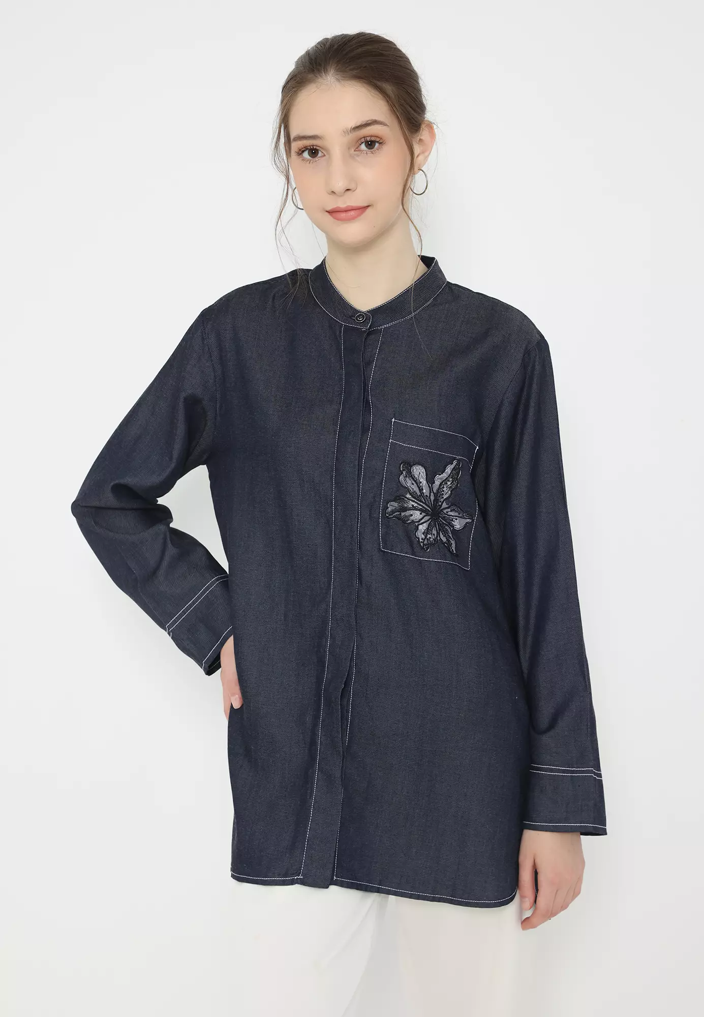 Brilliant GirlTunic Tencel Soft Denim With Embroidery In Pocket By Brilliant Girl Warna NAVY689000.00482300.00