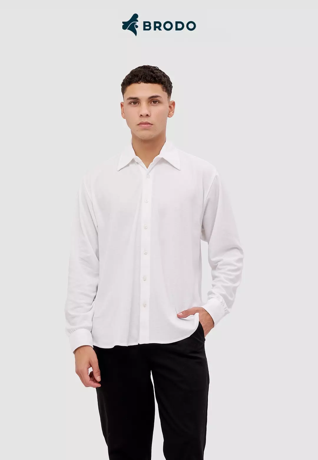 BRODO - Kemeja Broshirt Pique Longsleeve White