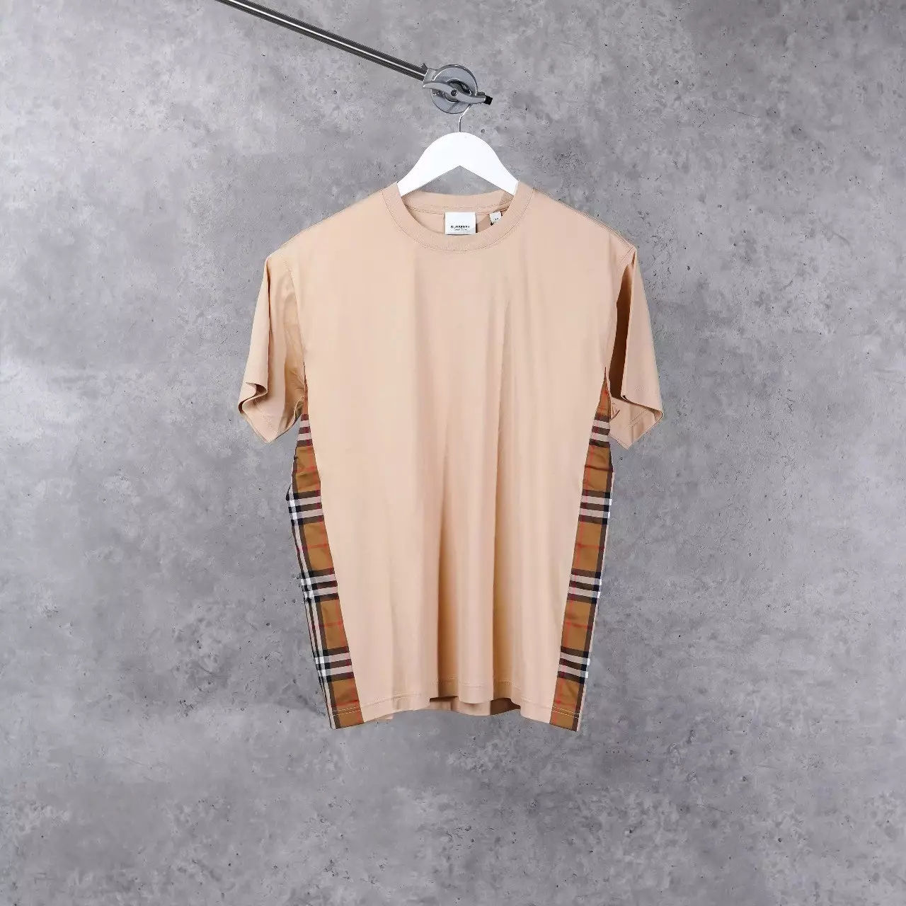 Kaos BURBERRY CHECK SIDE BIRCH BROWN SS24 BEIGE TSHIRT 100% ORIGINAL
