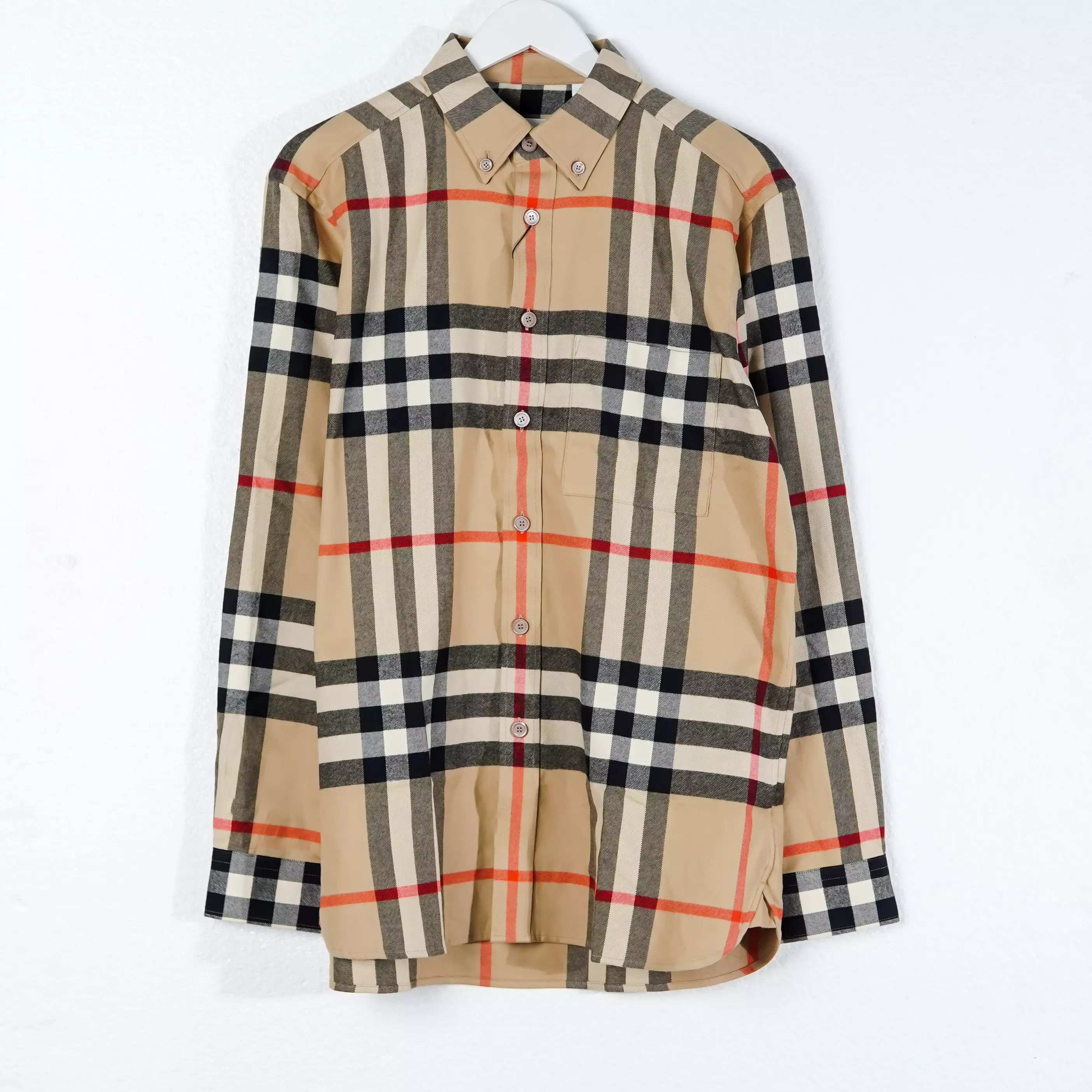 Kemeja BURBERRY CASTLAND CHECK ARCHIVE BEIGE LONG SHIRT 100% ORIGINAL