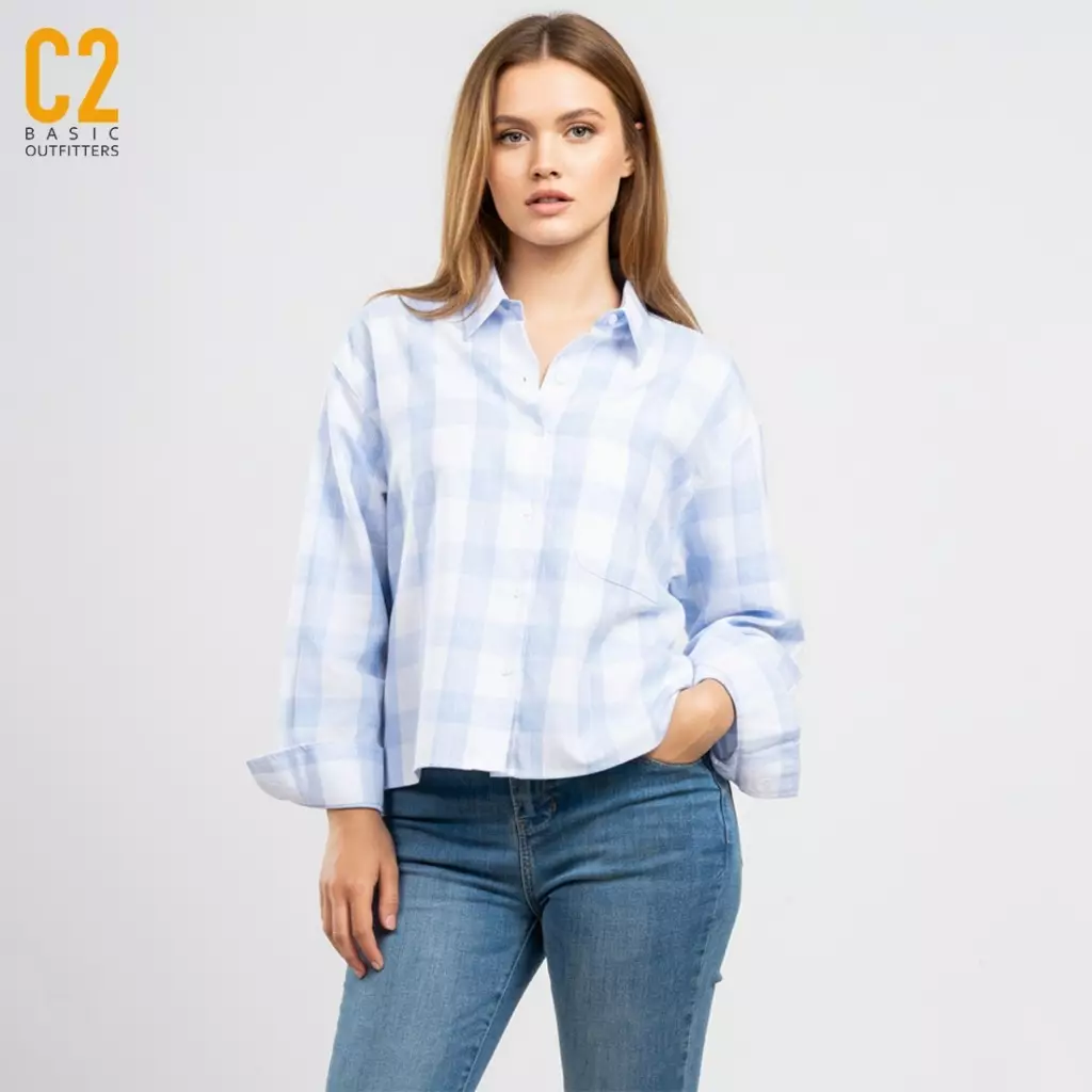 C2 OutfittersC2 Felucy Blue Kemeja Oversize Crop - Boxy Shirt Wanita459900.00298935.00