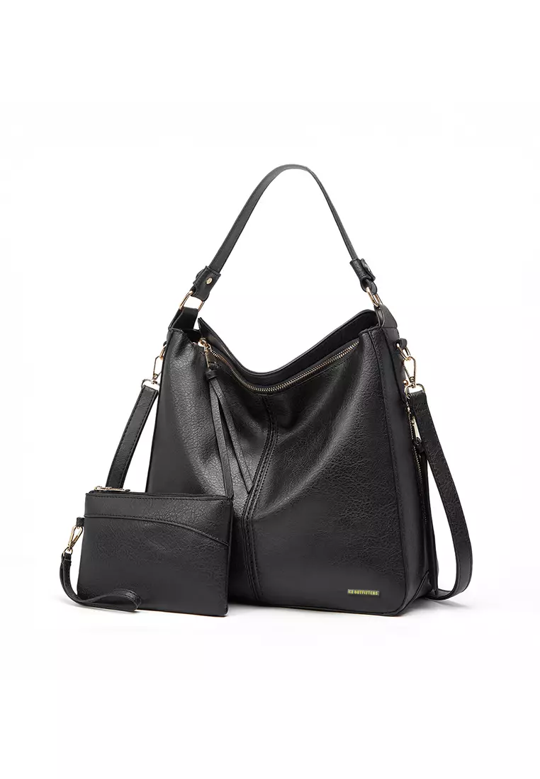 C2 Glenca Black 2-in-1 Hobo Shoulder Bag - Tas Hobo 2-in-1 Wanita