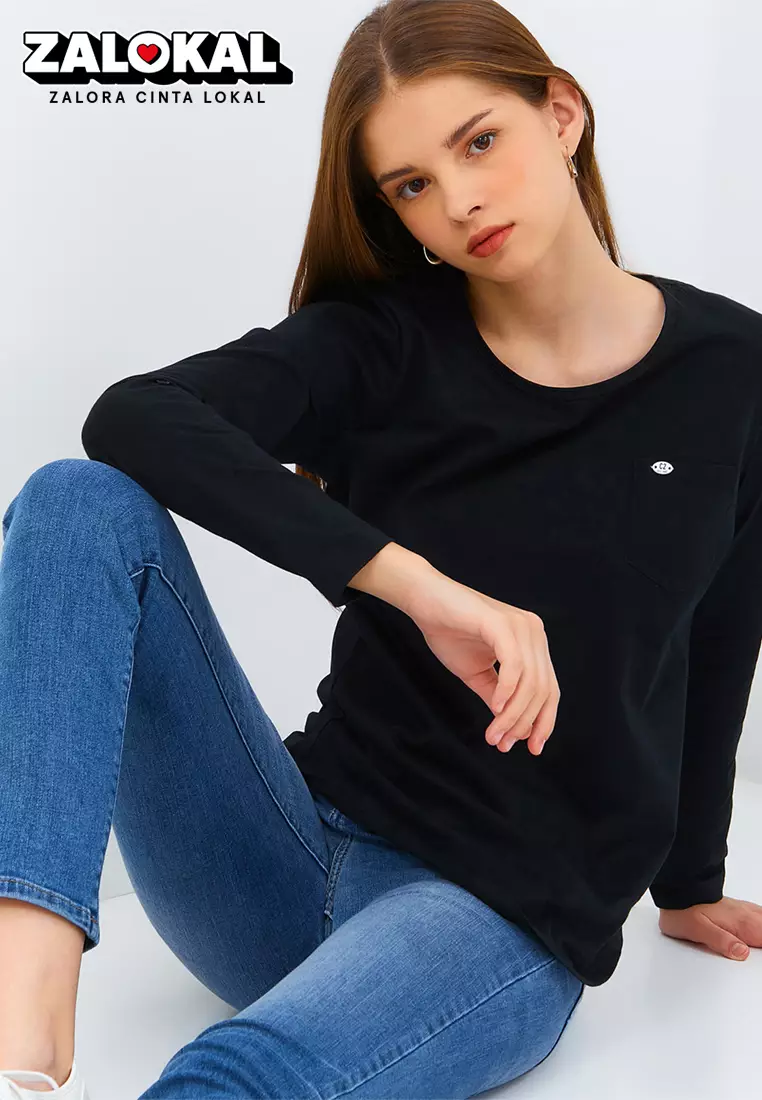 C2 Pipsie Black T-Shirt Wanita