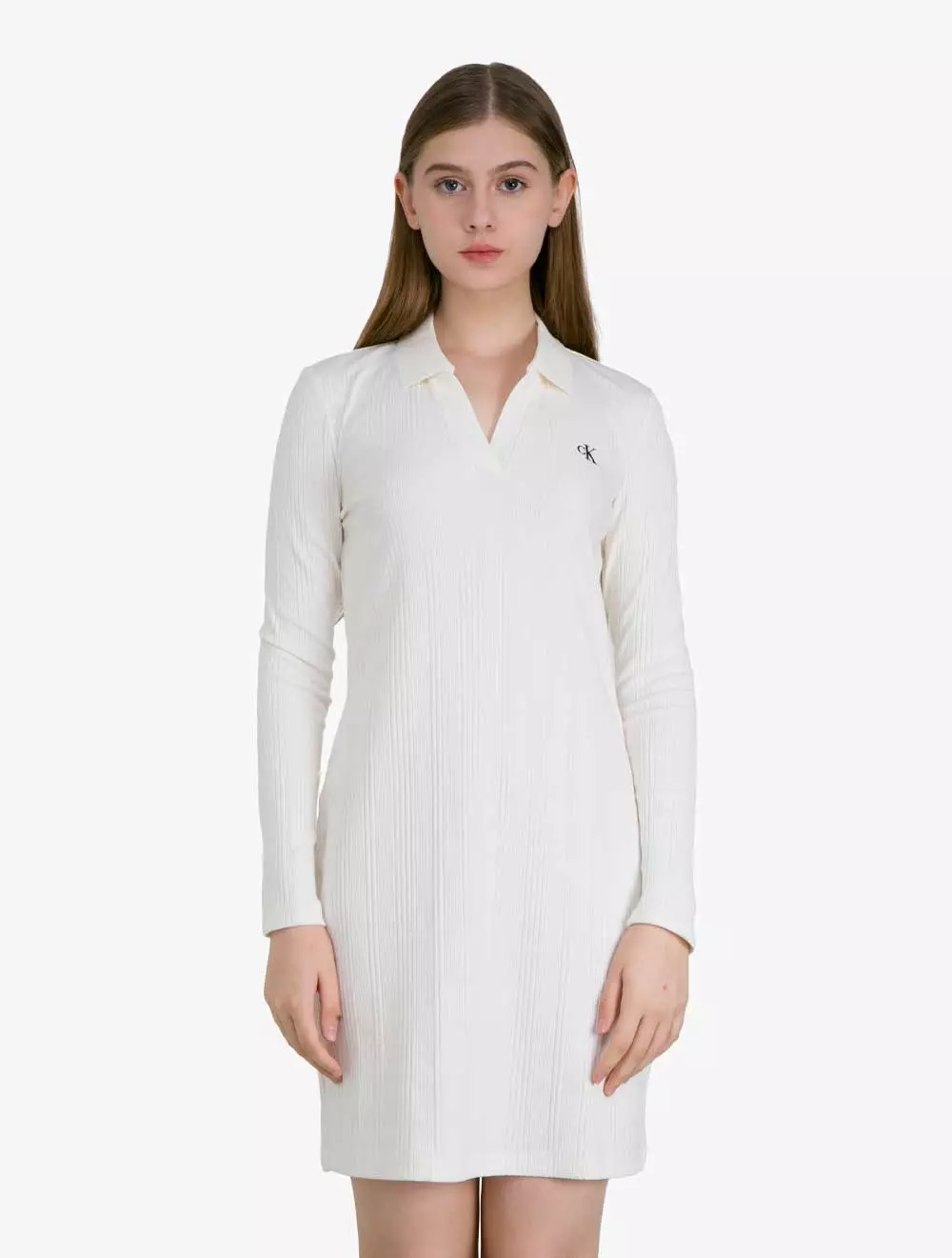 Calvin Klein Jeans - CK Logo Rib Long Sleeve Polo Dress - White - white