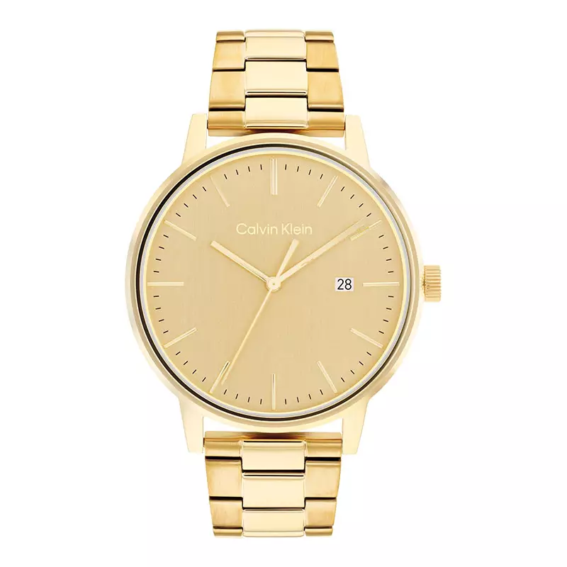 Jam Tangan Pria Calvin Klein Linked 25200056 Men Gold Dial Gold Stainless Steel Strap