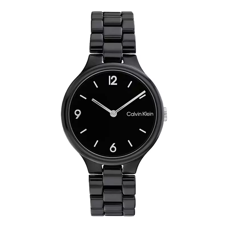 Jam Tangan Wanita Calvin Klein Linked 25200078 Ladies Black Dial Black Ceramic Strap