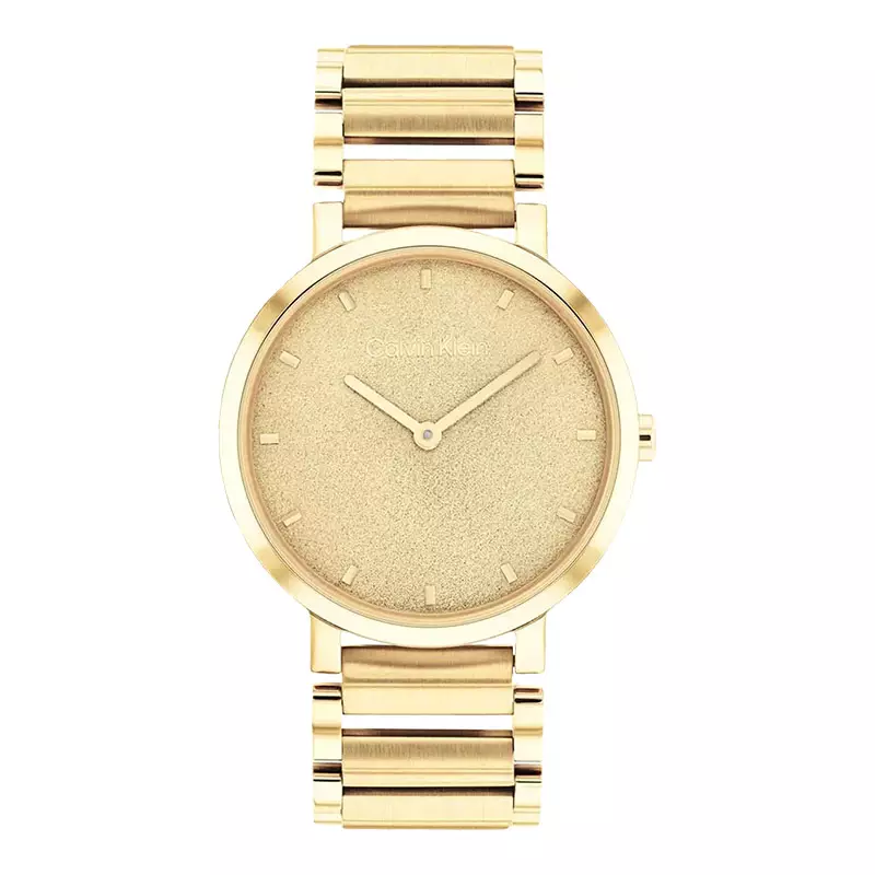 Jam Tangan Wanita Calvin Klein Open Link 25200086 Ladies Gold Dial Gold Stainless Steel Strap