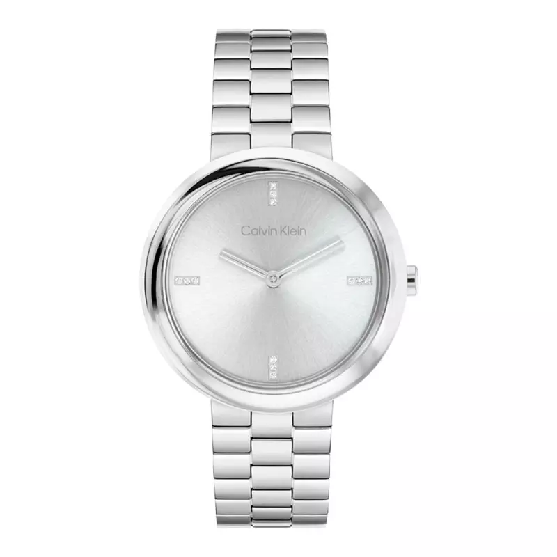 Jam Tangan Wanita Calvin Klein Twisted Bezel 25100093 Sunray Silver Dial Stainless Steel Strap
