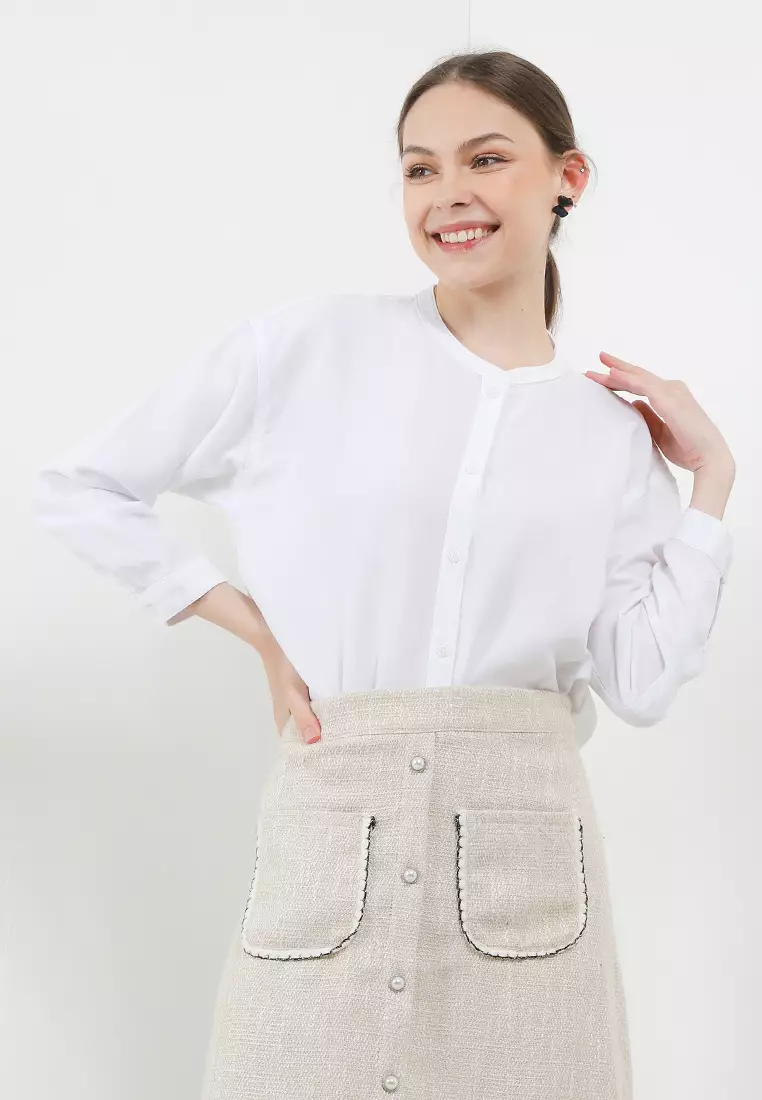 - Leher: Kerah Mandarin