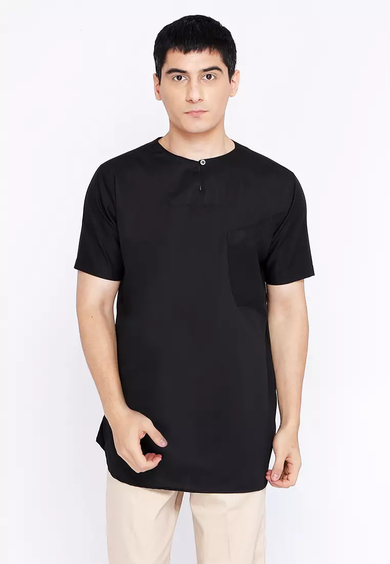 Casella Baju Koko Kurta Lengan Pendek | Casella Muslim Daily Wear 3003 Black