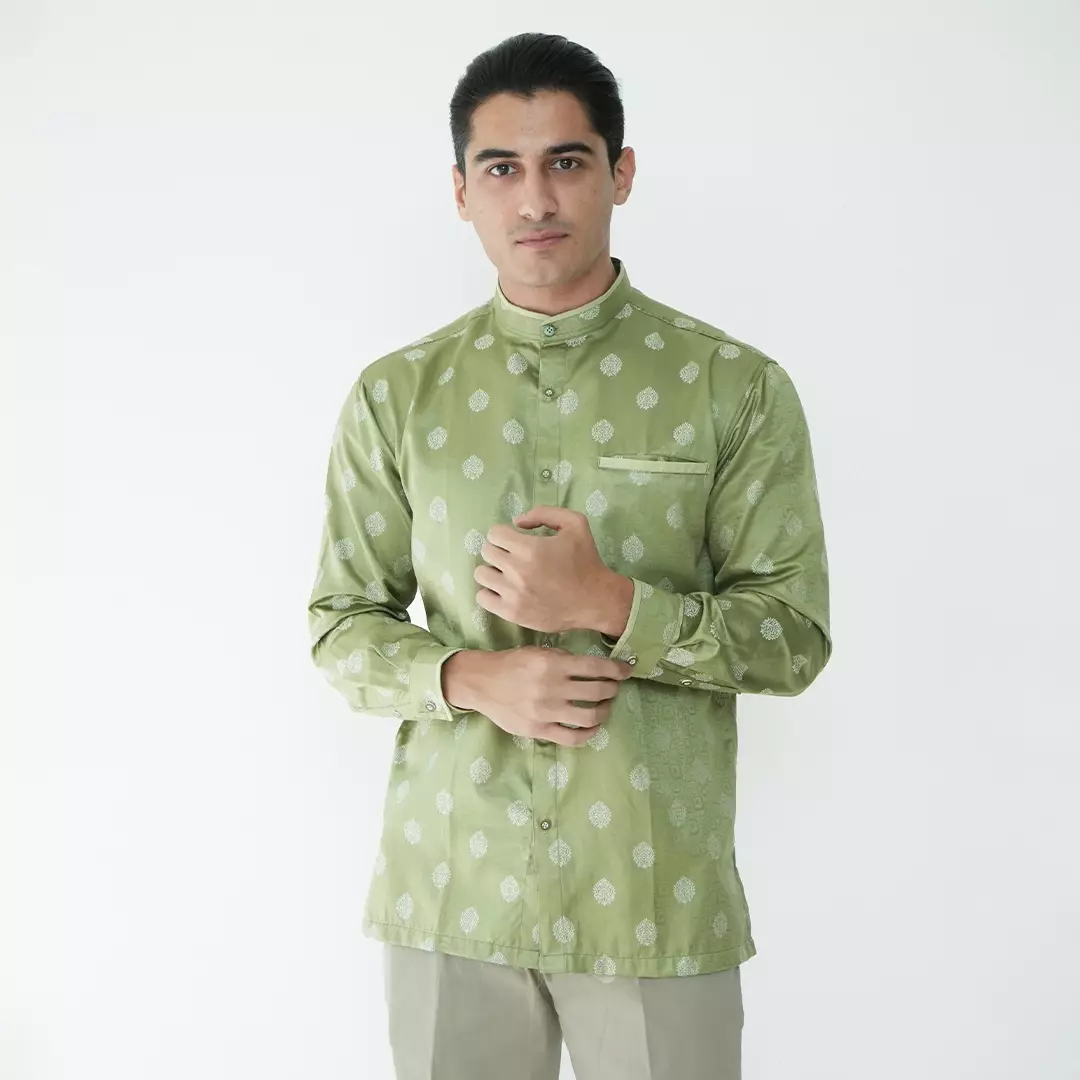 Casella Baju Koko Pria Lengan Panjang | Baju Koko Batik Syam 9982 Army
