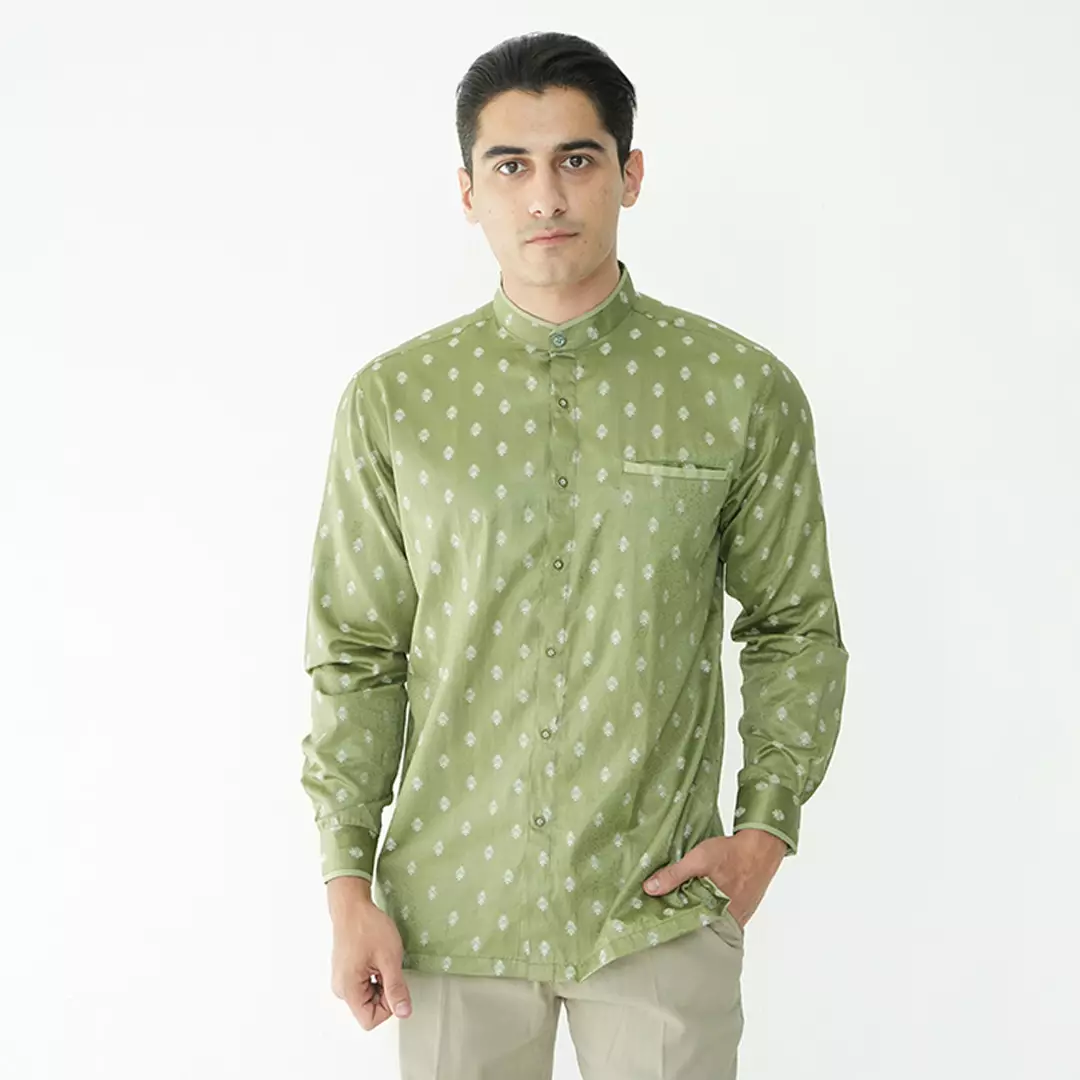 Casella Baju Koko Pria Lengan Panjang | Baju Koko Batik Syam 9983 Army