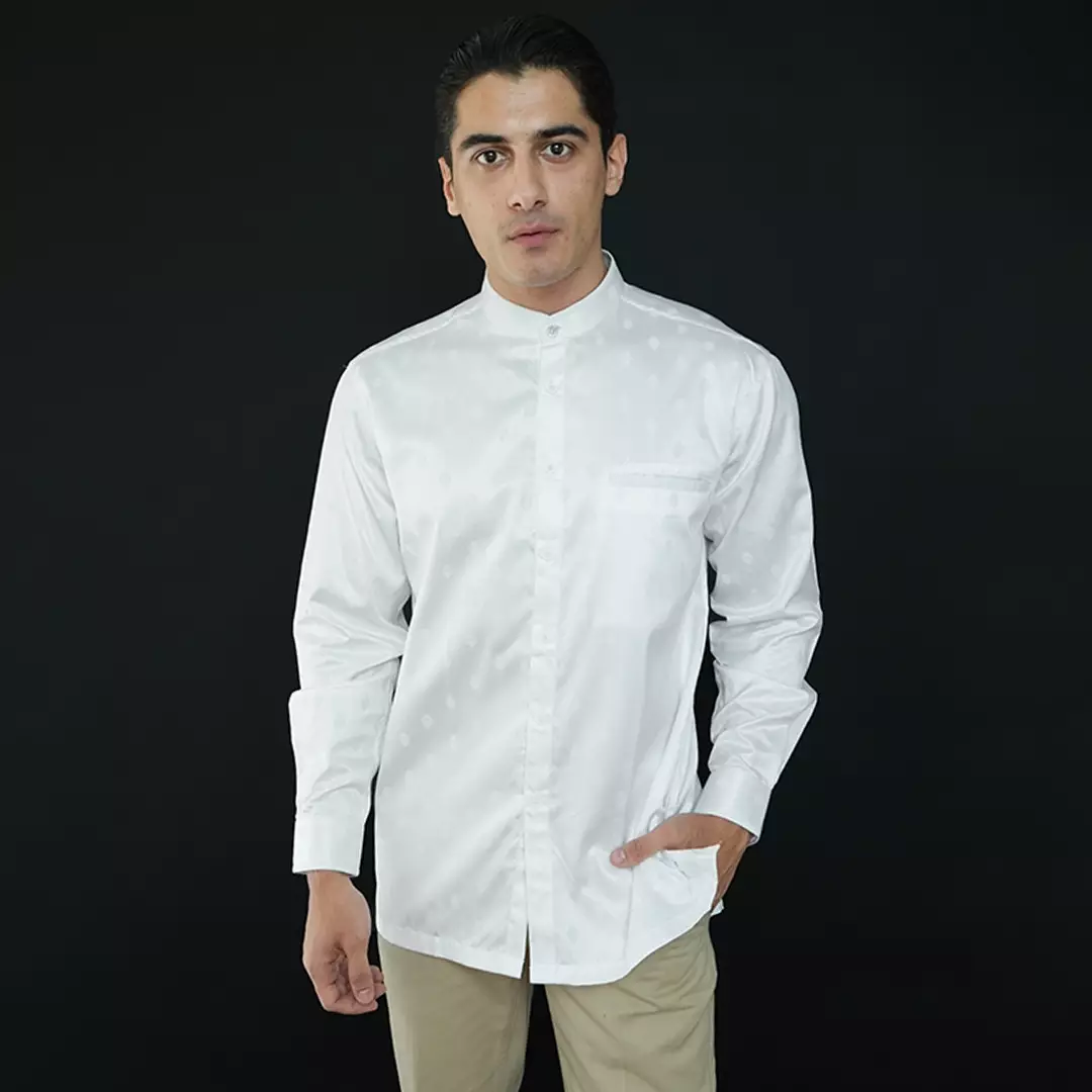 Casella Baju Koko Pria Lengan Panjang | Baju Koko Batik Syam 9983 White