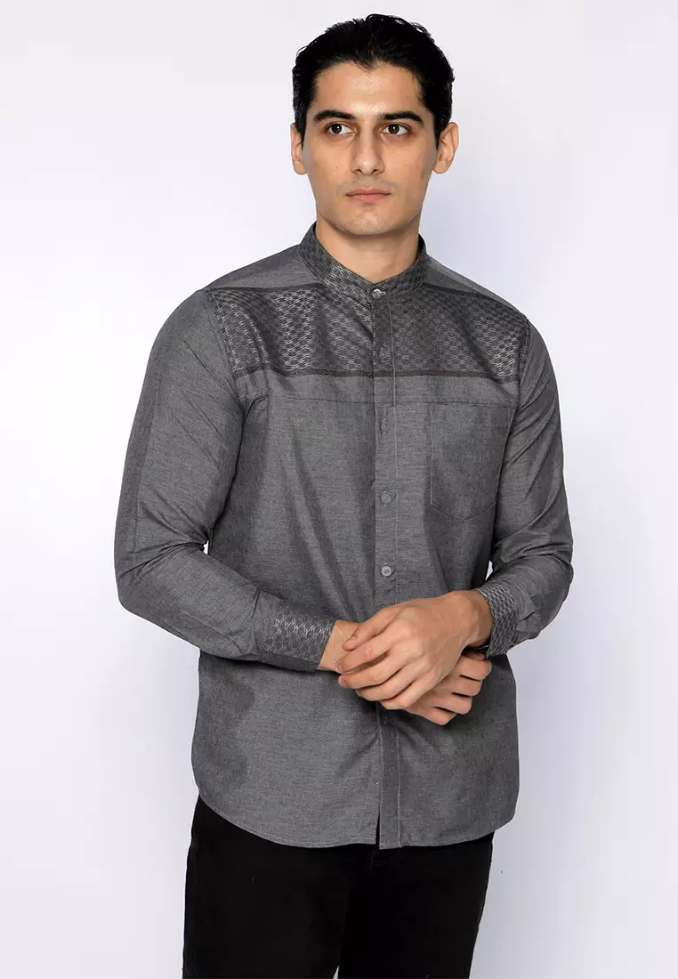Casella Baju Koko Pria Lengan Panjang | Baju Koko Hassan Horizontal 9912 Grey